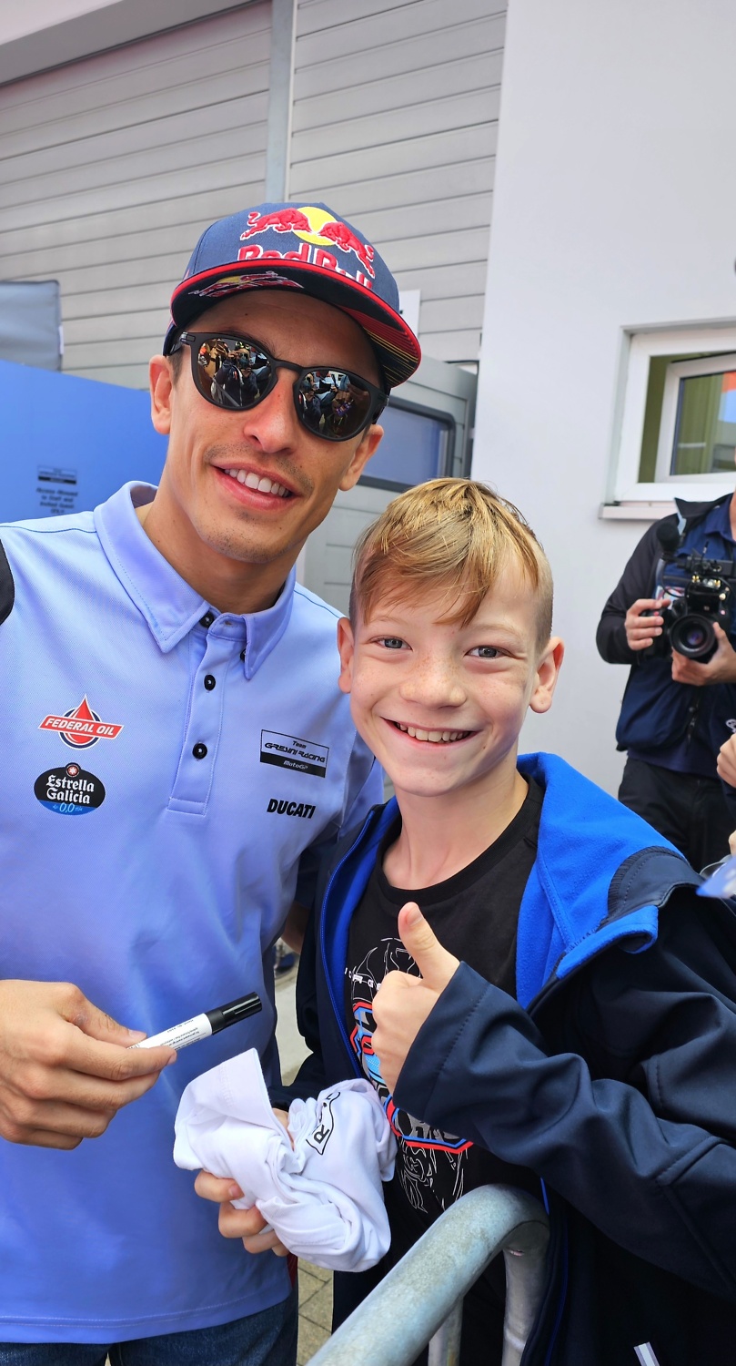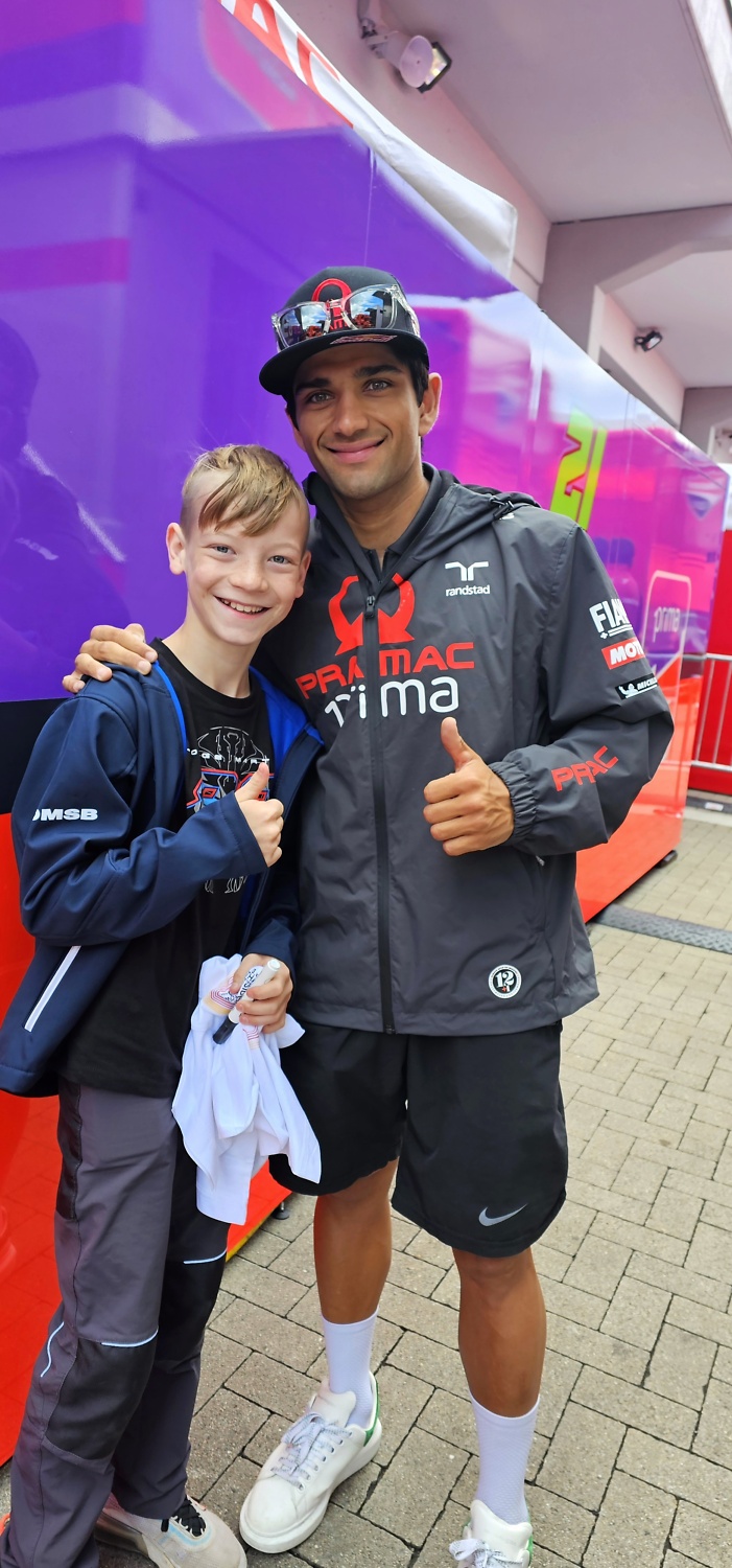 Ich hatte die Gelegenheit alle Stars und Sternchen im Paddock zu treffen, Fotos zu machen und Autogramme zu erhaschen – vor allem mit meinen Top-Stars Jorge Martin, Marc Marquez und Pedro Acosta war ich überglücklich. Ein weiteres Highlight waren die deutschen Fahrer Marcel Schrötter, Stefan Bradl und Sandro Cortese. In der Fanzone und beim Herowalk durften wir vor einem mega Publikum die Fahrer auf die große Bühne begleiten und die Autogrammstunde wie die Großen mitmachen – Unbeschreiblich!