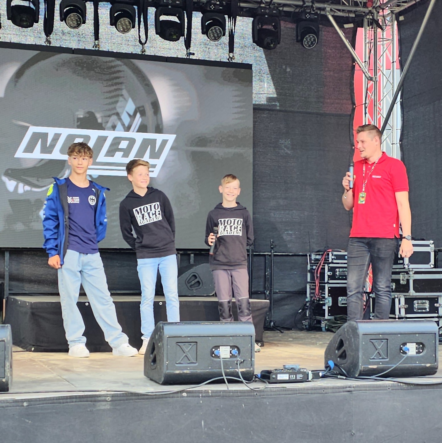 Nachwuchsförderung 2.0 gab es von Nolan Helmets, meinem Trainer Dario Giuseppetti und dem Riders Club mit Interview auf der Bühne – hier durfte ich mit Steffen Mario vom PS Motorradmagazin plauschen, von mir erzählen und die Zuhörer begeistern. Einfach ein unglaublich tolles Erlebnis.