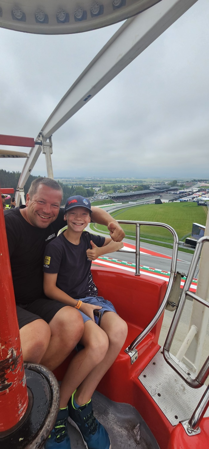 Da ich in der MiniGP Austria eingeschrieben bin, bekam ich Tickets für das MotoGP-Wochenende am Red Bull Ring in Spielberg. Also ging es am Donnerstag nach der Schule in die Steiermark. Es war ein mega Wochenende – ich hatte riesig Spaß. Ob auf dem Campingplatz beim Wasserrutschen auf der Wiese, beim Anfeuern meiner Lieblingsfahrer von der Tribüne oder auf dem Riesenrad mit toller Aussicht auf das Rennen der Moto3. Immer wieder ein Erlebnis!
