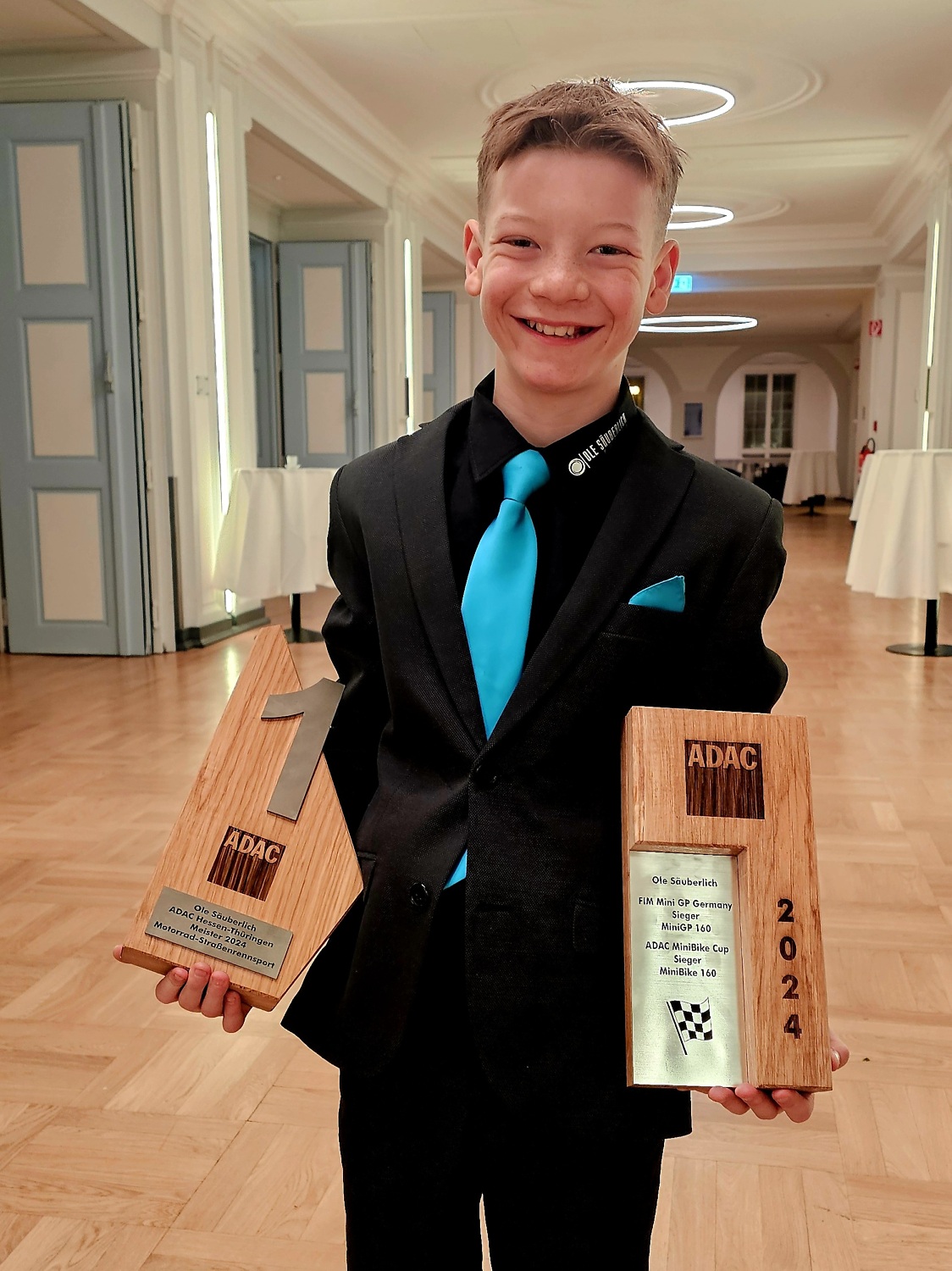 Am 08.02.25 fand im edlen Kongress Palais in Kassel die Sportlerehrung des ADAC Hessen-Thüringen statt. In festlichem Ambiente wurde ich für meine herausragende Leistung in der Saison 2024 geehrt. Der Abend begann mit der feierlichen Pokalübergabe, bei der ich als Sieger für meine Erfolge ausgezeichnet wurde. Anschließend folgten ein Interview auf der Bühne und die Präsentation des Leistungskaders 2025, in dem ich erneut aufgenommen bin.