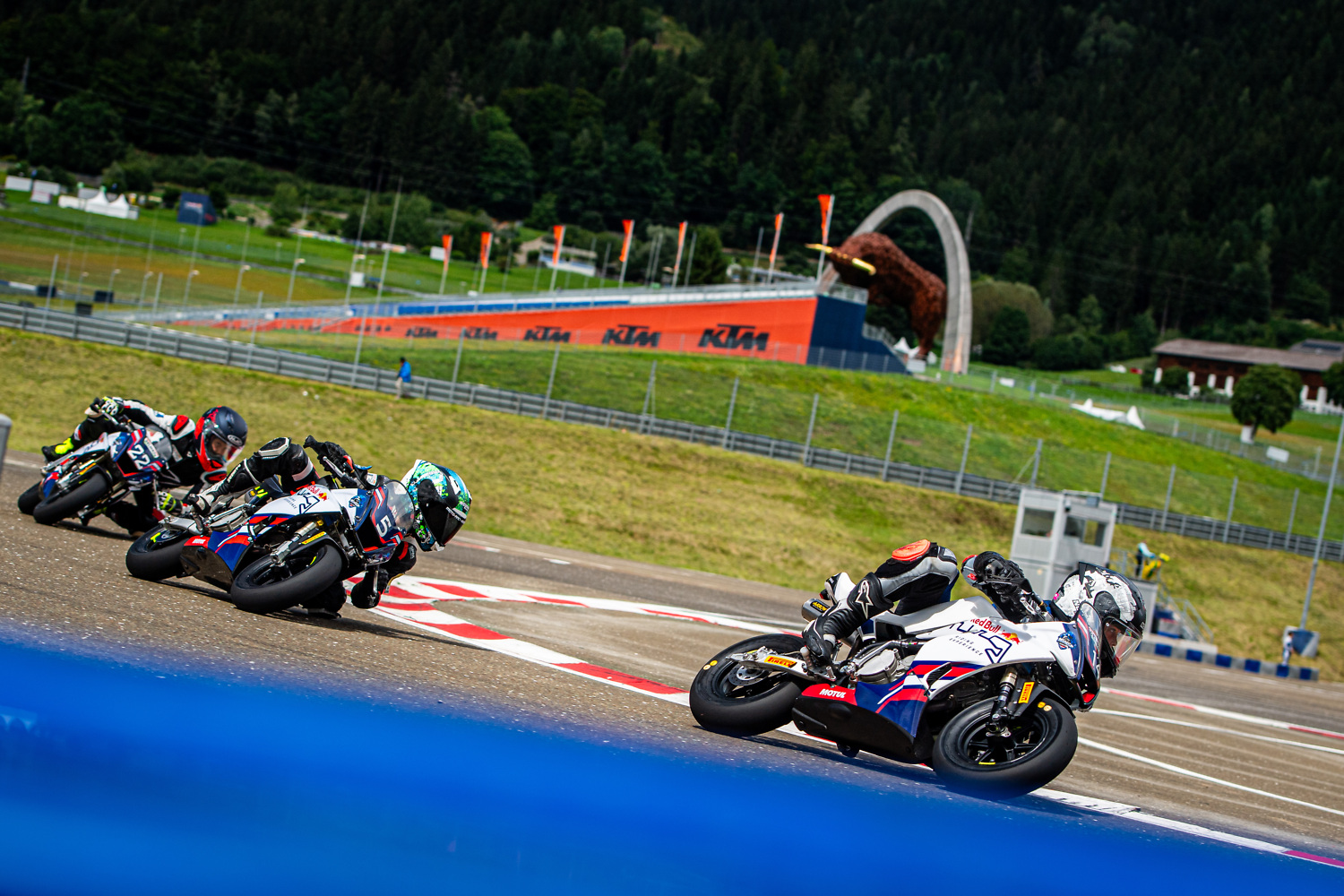 Das 1. Rennen am Sonntag startete im Regen. Leider ging mein Motorrad in der Startaufstellung aus, sodass ich nach einer extra Einführungsrunde von ganz hinten starten musste. Im Regen habe ich alles gegeben und konnte noch bis Platz 10 vorfahren. Bestmöglichste Schadensbegrenzung! Dann kam die Sonne raus und es trocknete ab. Nach einer extra Reifeneinfahr-Session fuhren wir auf Slicks raus. Ich fühlte mich pudelwohl und konnte mit den Rundenzeiten der schnellsten 4 Fahrer mithalten und mir am Ende Platz 5 erkämpfen.