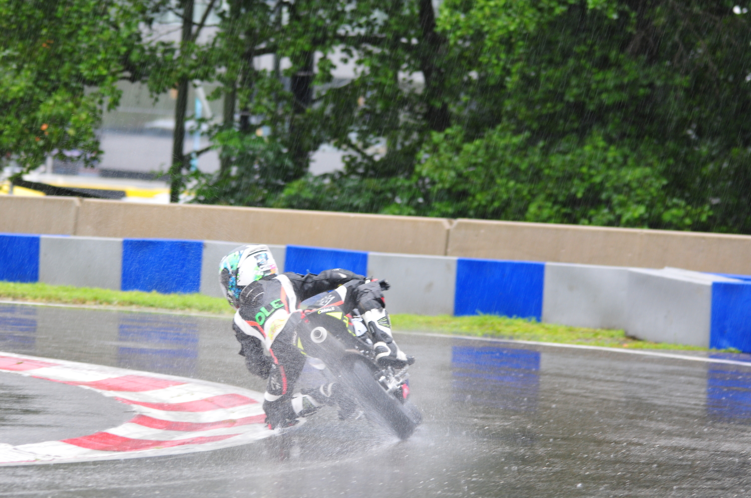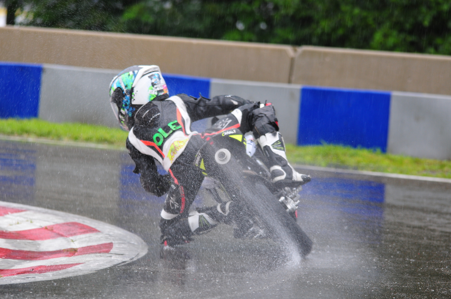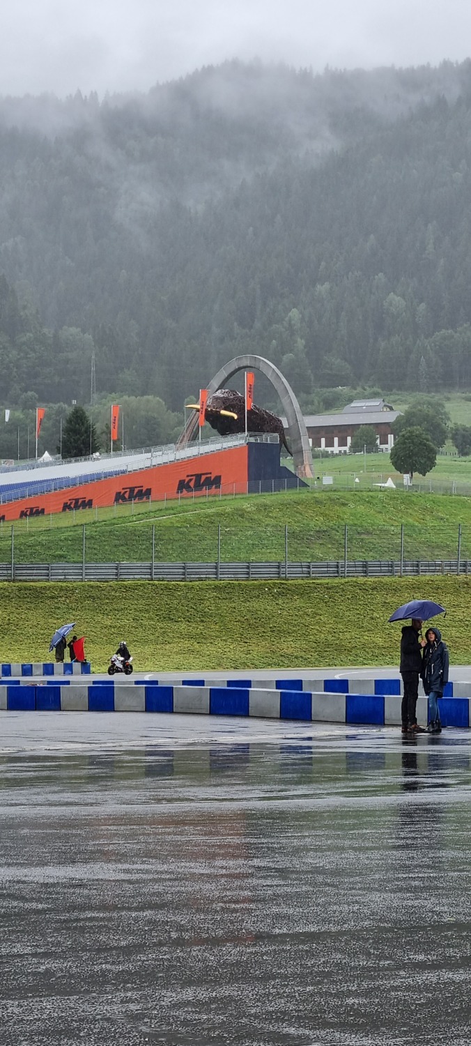 Das Wochenende startete mit Dauerregen – mein persönlicher Albtraum, aber nicht zu ändern. Am Trainingsfreitag kämpfte ich mich Schritt für Schritt voran und hatte immer mehr Vertrauen in mein Motorrad. Die Rundenzeiten wurden immer besser und ich kam fast sturzfrei durch.