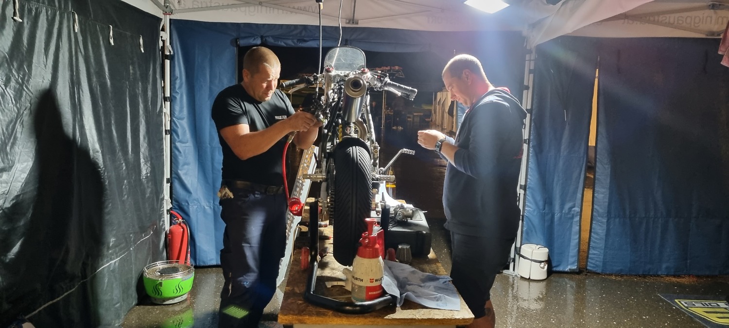 Das viele Wasser führte auch zu technischen Problemen – Papa und Bernhard Auinger schraubten bis in die Nacht! Riesiges DANKE für den tollen Support – natürlich auch an BG Sportpromotion und Gustl Auinger.