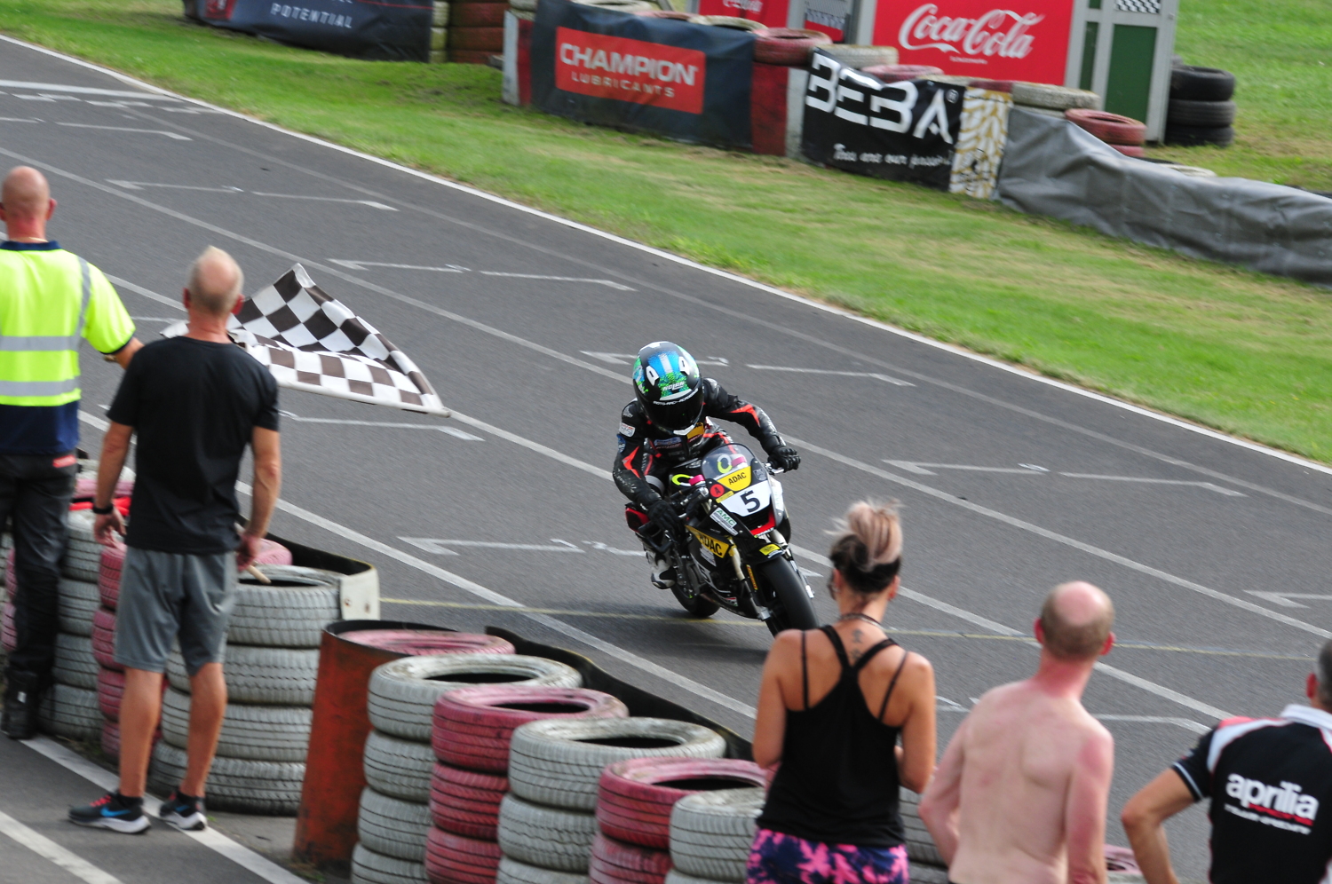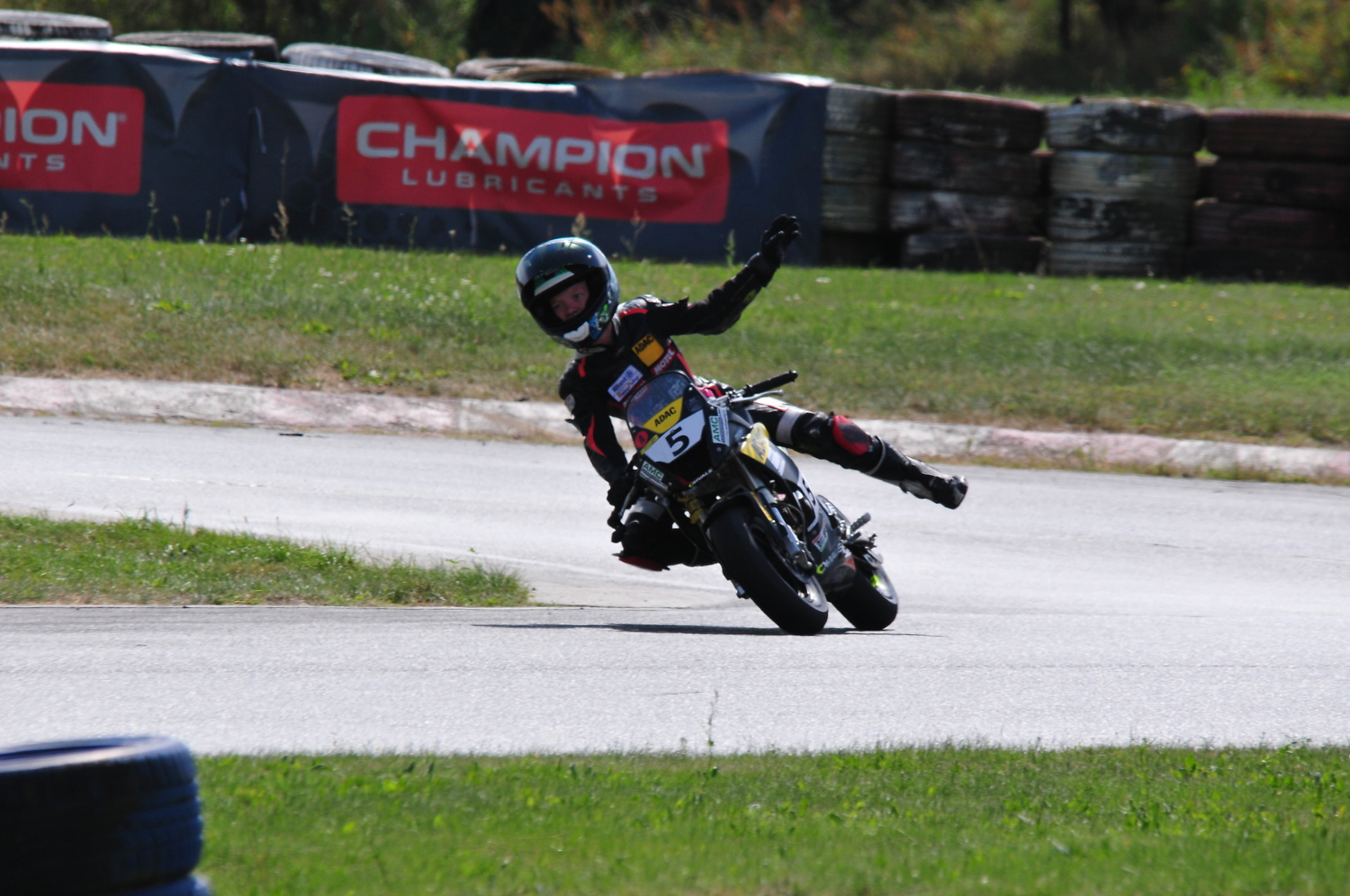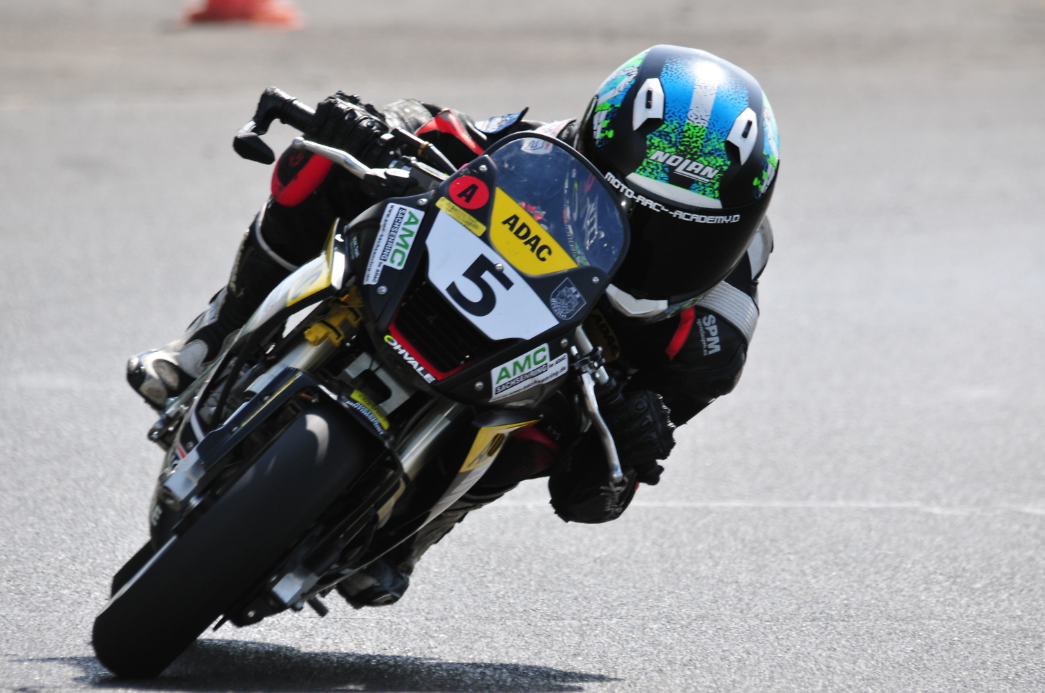 Im 1. Rennen verlor ich am Start einen Platz und blieb dann in der 2. Runde mit meinem Knieschleifer am Curb hängen. Ich kam ins Schlingern, verlor den Knieschleifer und musste noch einen Fahrer passieren lassen. Trotz hartem Fight wurde es nur P7 – ich war megatraurig!