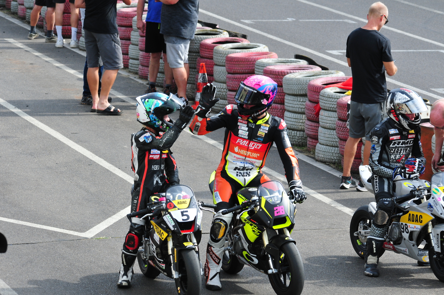 Die 1. Quali gelang auf Regenreifen mit der falschen Übersetzung nicht so gut, das konnte ich in der 2. Quali wieder gut machen. Trotz abgebrochener Bestzeitrunde landete ich auf P5. Also ging es vom 5. Startplatz in beide Rennen.