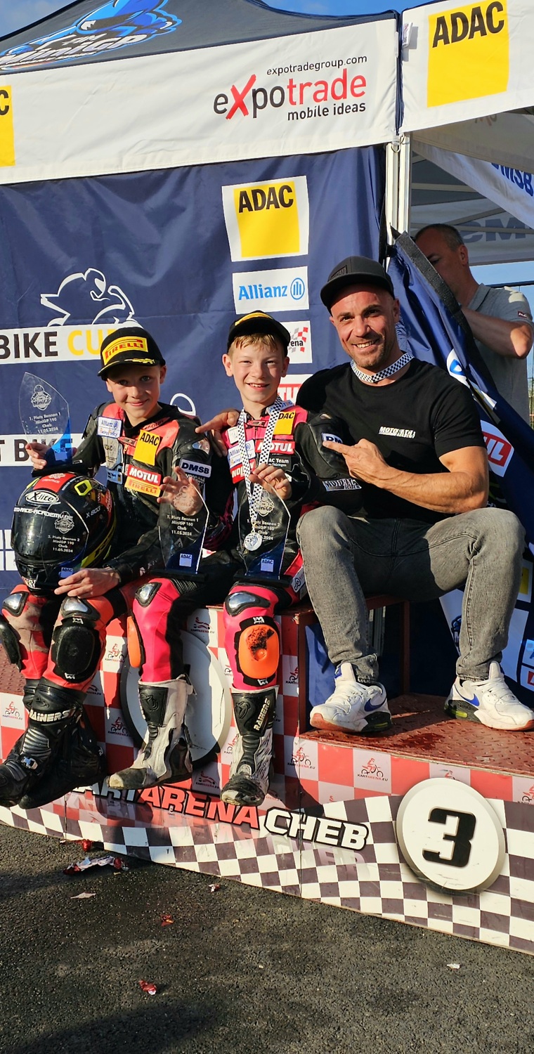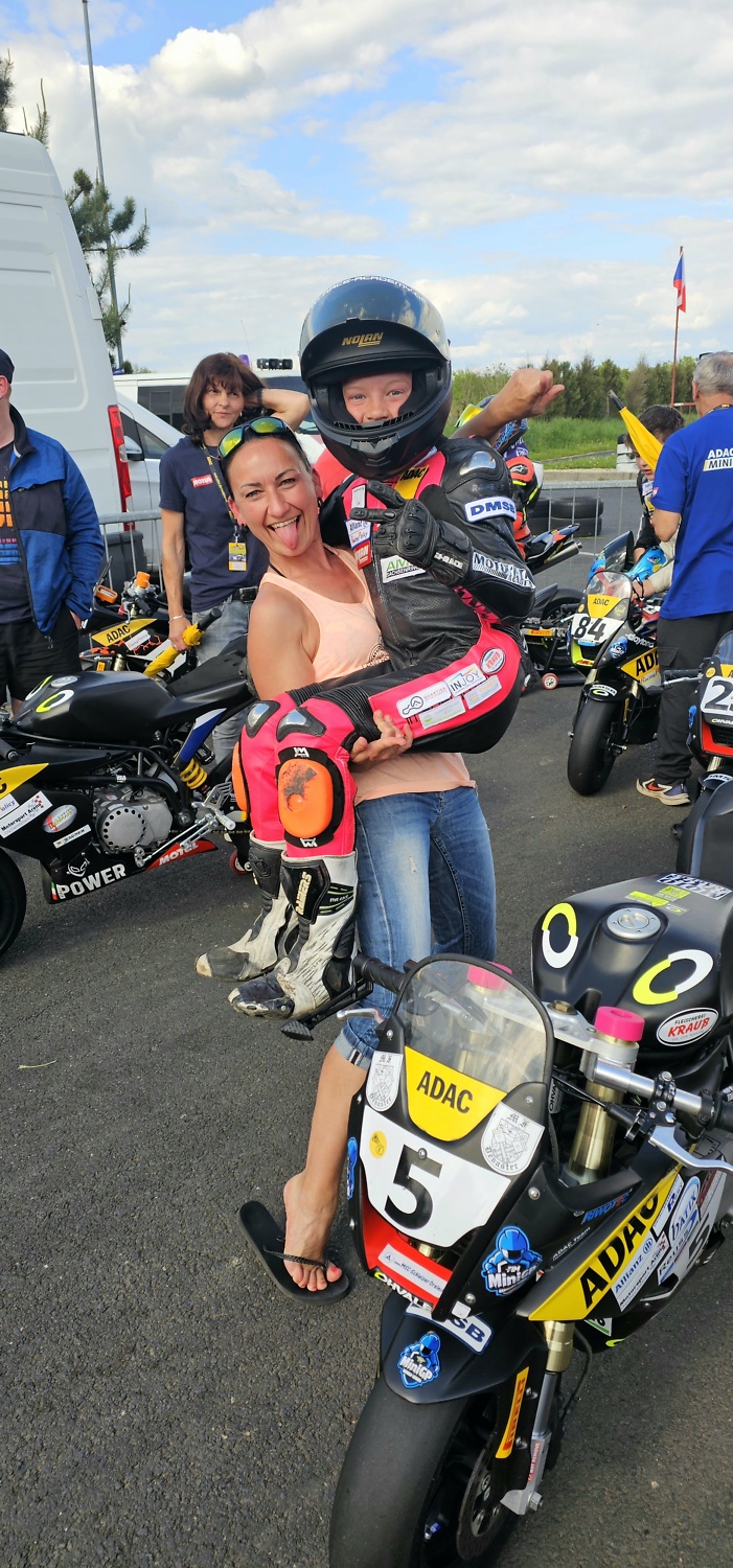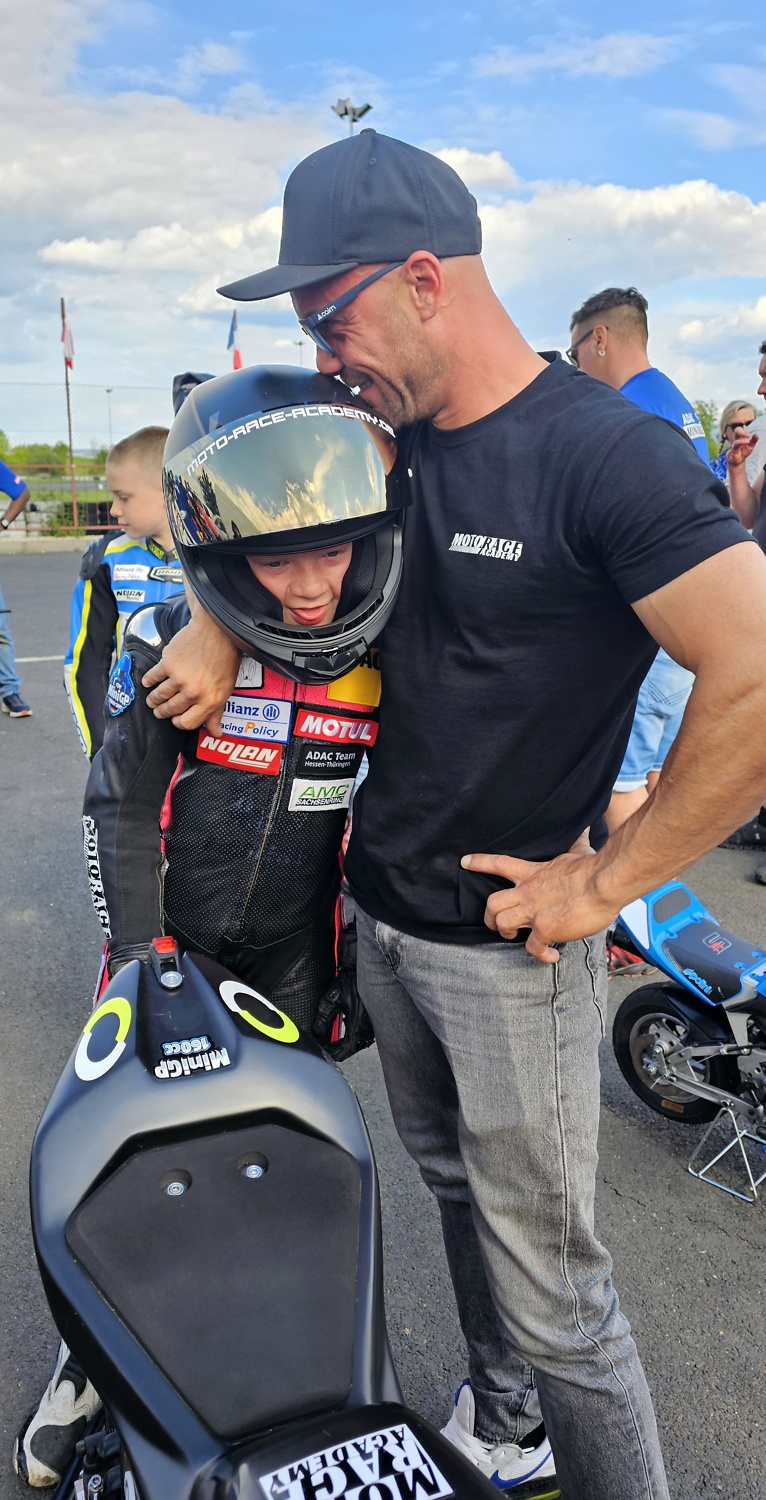 Mein Trainer und Motivator Dario Giuseppetti war immer an meiner Seite und unterstützte mich nicht nur mit wertvollen Tipps. Im 1. Rennen hatte ich einen guten Start und übernahm die Führung. In der 2. Runde fiel ich wieder auf Platz 2 zurück, hängte mich an den Führenden dran und nutzte zwei Runden vor Schluss meine Chance. Ich verteidigte die Führung bis ins Ziel.