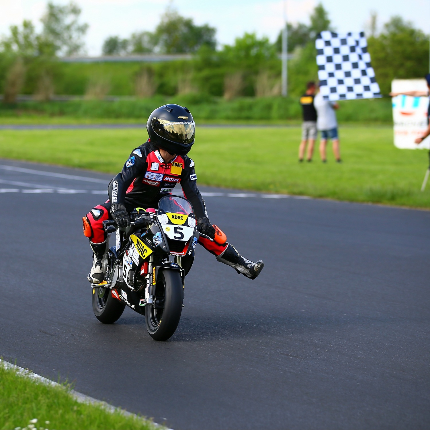 Im 2. Rennen klappte es dann mit dem Start- Ziel- Sieg. Nach einem guten Flaggenstart konnte ich mich von meinen Verfolgern absetzen und überquerte wieder als Sieger die Ziellinie.