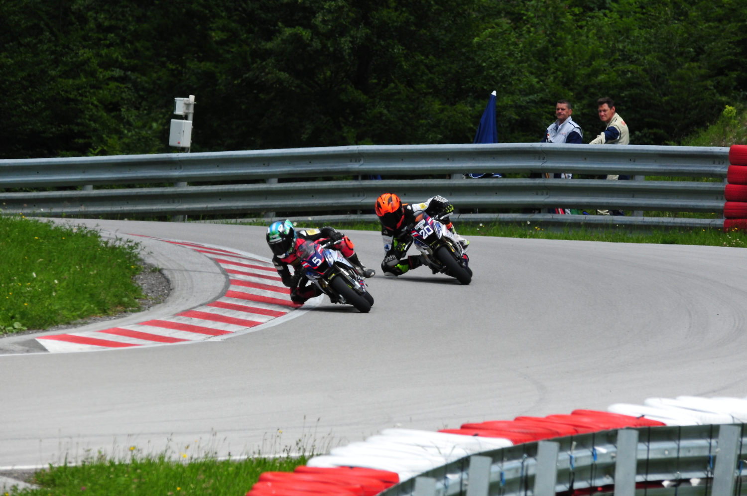 Im 1. Regenrennen konnte ich von ganz hinten bis Platz 7 vorfahren – hier wäre auch noch mehr gegangen, ich hatte aber die ganze Zeit nicht das volle Vertrauen in mein Motorrad. Im 2. Rennen startete ich super, konnte meinen 1. Platz aber nicht lange verteidigen und wurde letztlich 3. Darüber ärgerte ich mich sehr – aber nicht zu ändern, ich hätte einfach mehr am Gashahn drehen müssen.