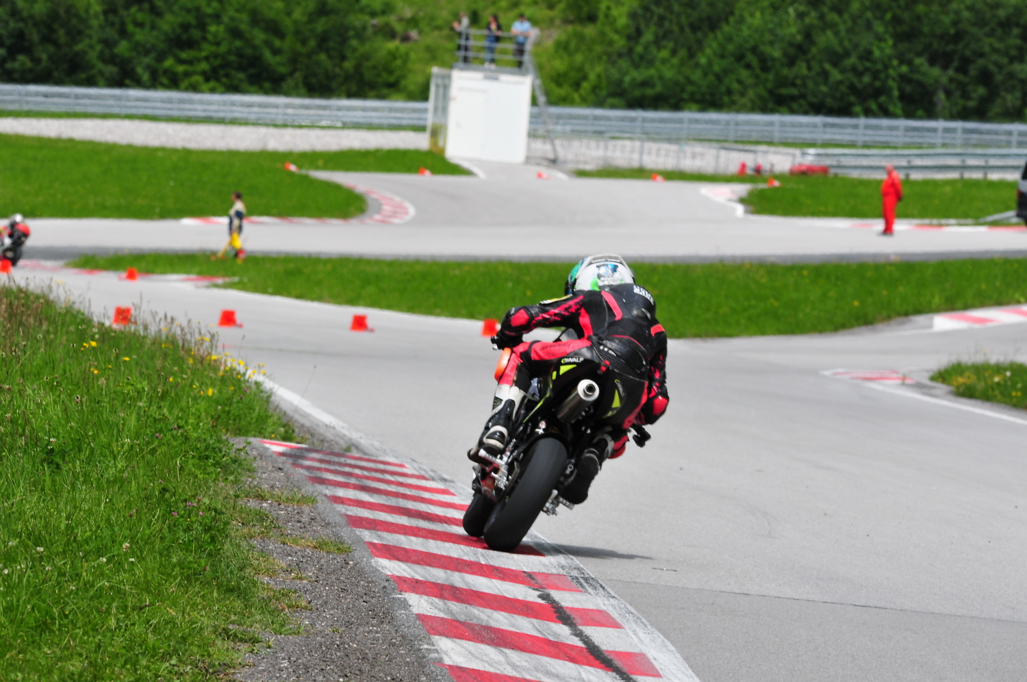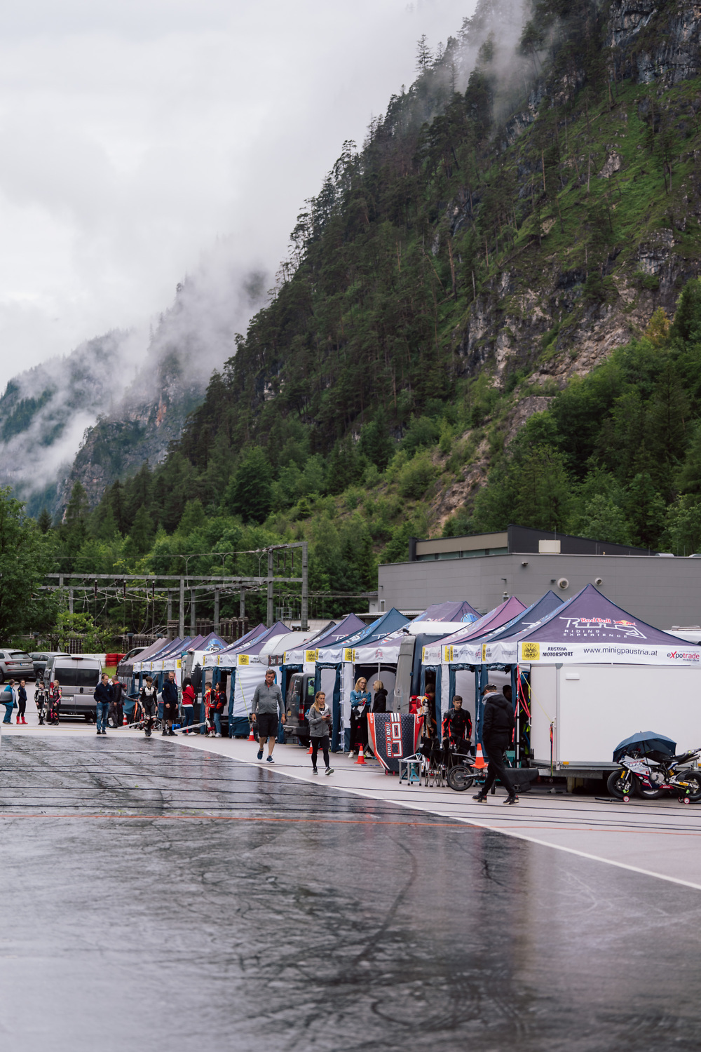 Am Samstag startete das Training bei bestem Wetter. Wir konnten viel ausprobieren und ich fühlte mich wohl auf der Strecke. Nach der Fahrerbesprechung am Mittag tobte ich mit meinem Roller stuntmäßig auf der Driftgleitfläche – danach begann das Ziehen im Bauch und wurde immer schlimmer. Trotz Schmerzmitteln und 1 Stunde Schlaf konnte ich mich vor der 1. Quali kaum auf den Beinen halten. Also machten wir bei Verdacht auf Hodentorsion einen Abstecher ins Spital nach Zell am See. Dort angekommen hatten sich die Schmerzen vor Schreck in Luft aufgelöst. Zum Glück!