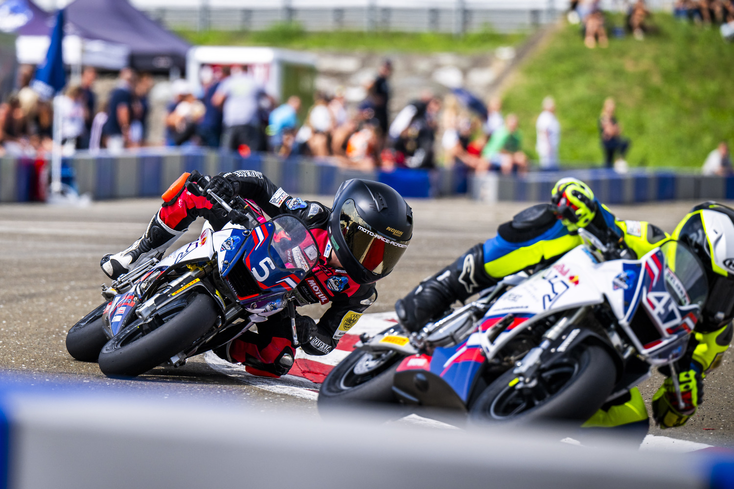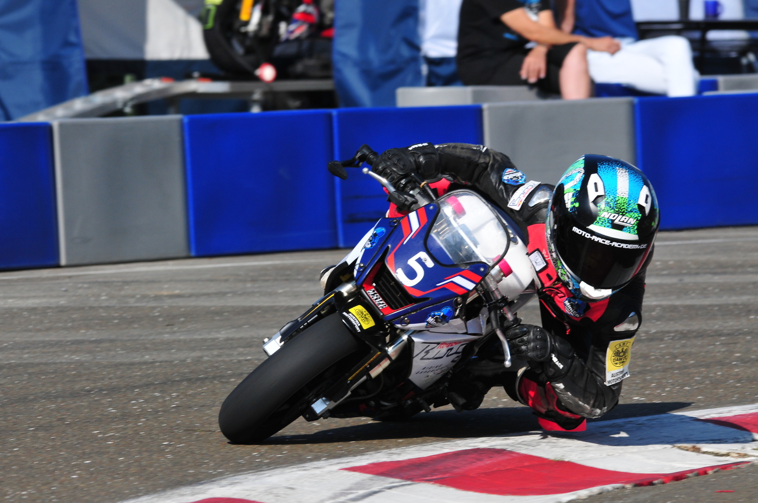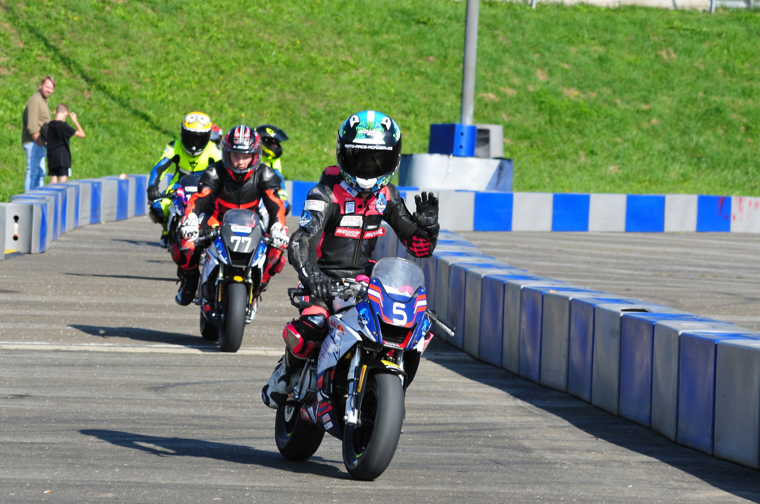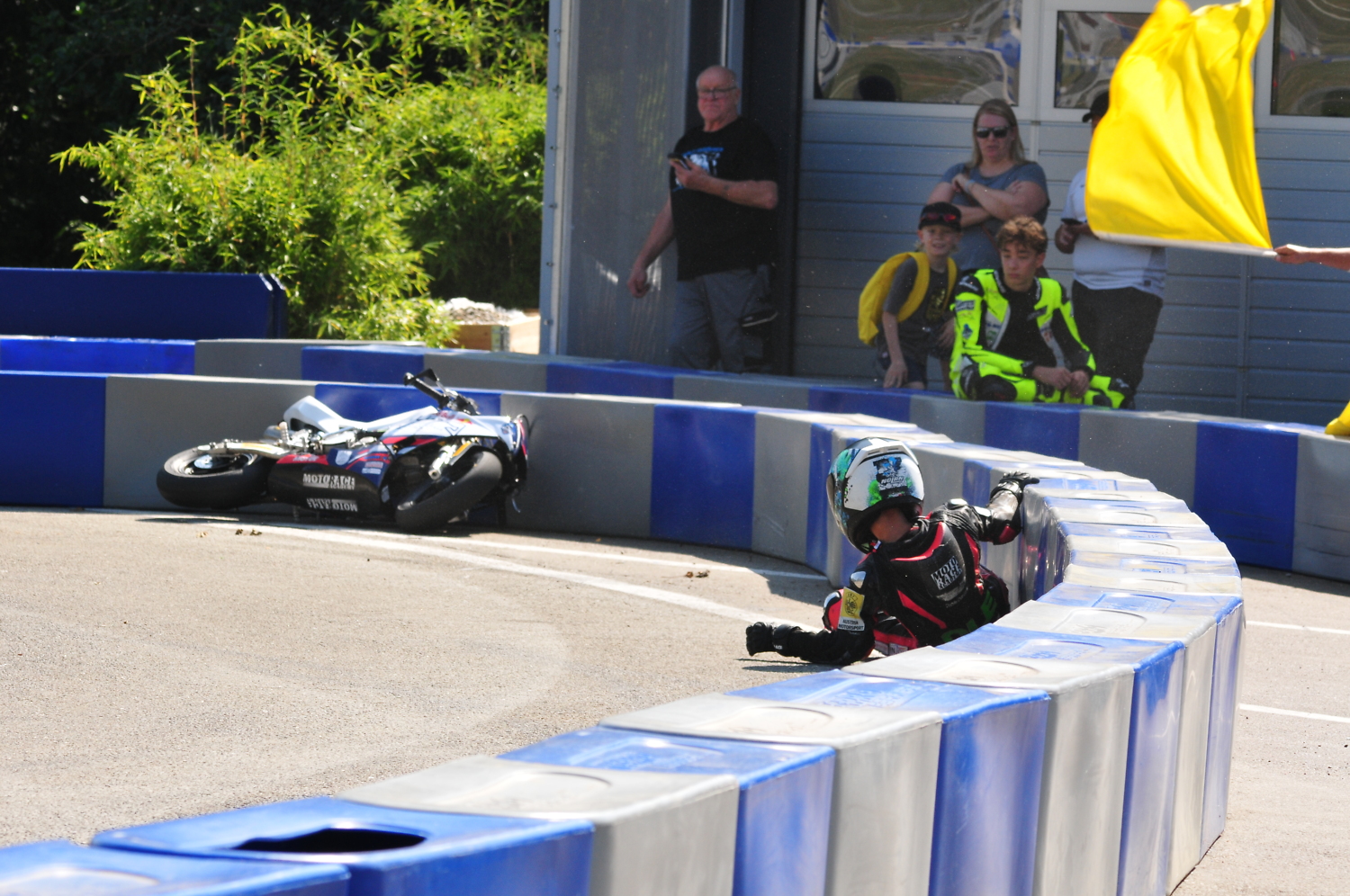 Der Rennsonntag startete wieder sehr sonnig und heiß. Im 1. Rennen von Platz 5 gestartet konnte ich die ganze Zeit in einem starken Starterfeld mitkämpfen und landete letztlich auf dem undankbaren 4. Platz. Im 2. Rennen wollte ich mehr – doch in der Startaufstellung ging mein Motorrad aus und ich musste von ganz hinten starten. Von Startplatz 18 kämpfte ich mich dann kontinuierlich nach vorn bis auf Platz 6.
