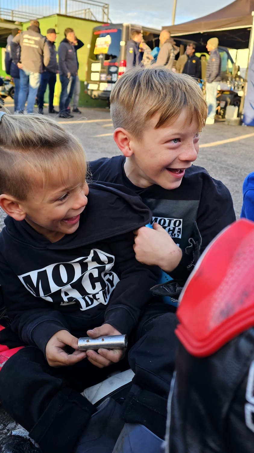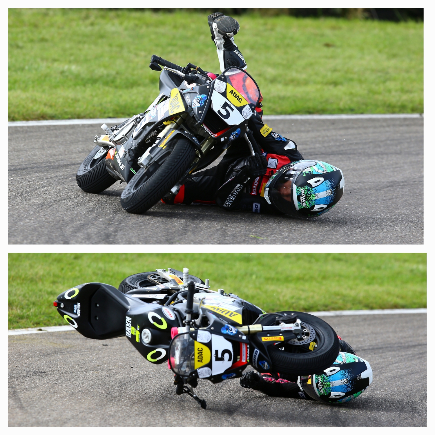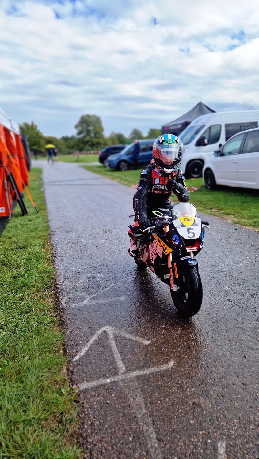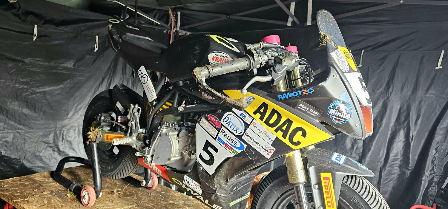 Am Samstag ließen wir das 1. Training wegen des Nebels und der Kälte ausfallen. Im 2. Training stürzte Ole leider in der 3. Runde und das Motorrad musste ersteinmal wieder funktiostüchtig gemacht werden. Das 1. Quali war daher auch nicht so gut und er landete im Regen auf Platz 10. Das 2. Quali funktionierte besser und er konnte sich mega steigern. Kurz vor Ende rutschte er mit dem Vorderrad auf Paltz 4 liegend weg und landete letztlich auf Startplatz 5.