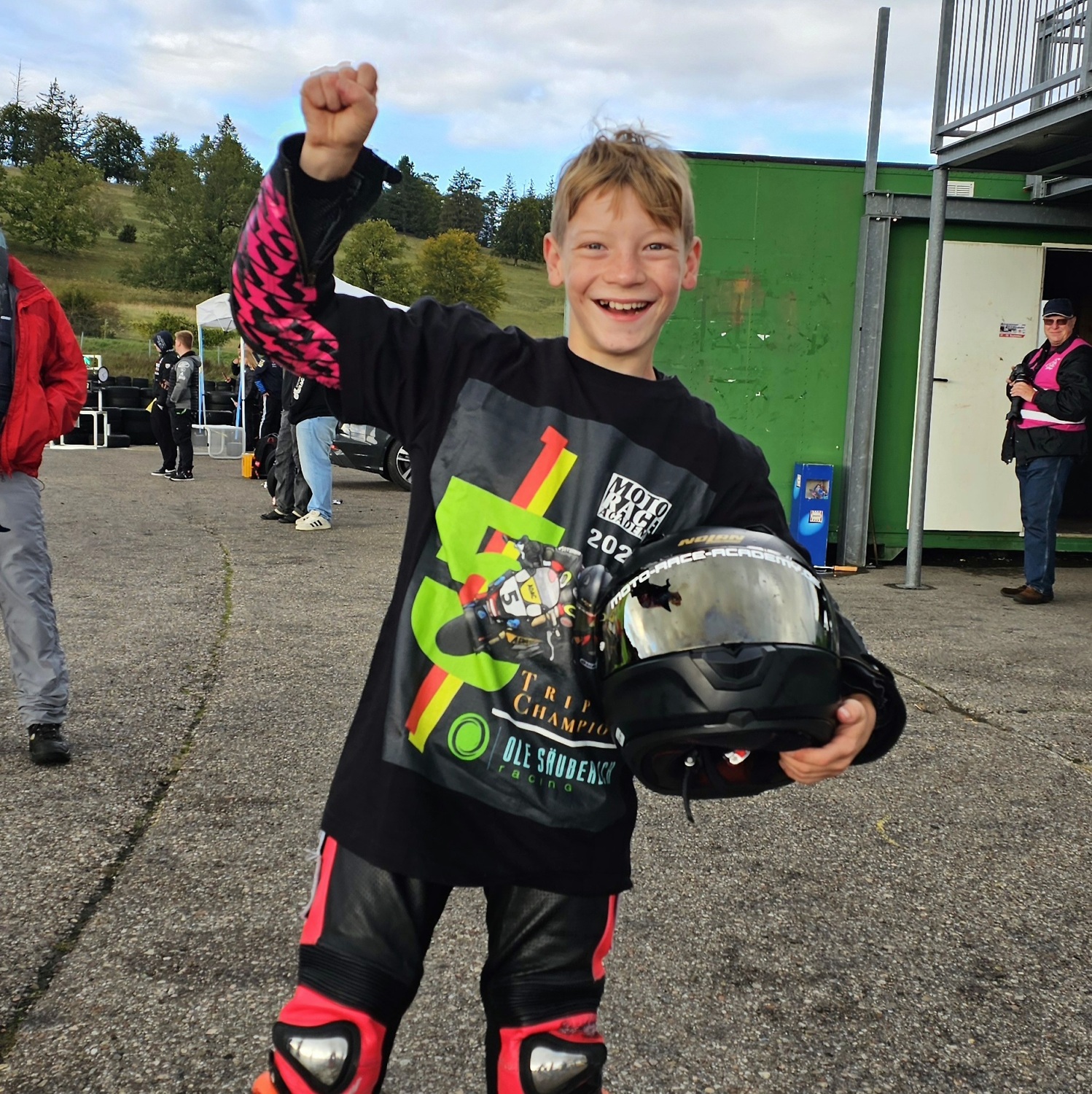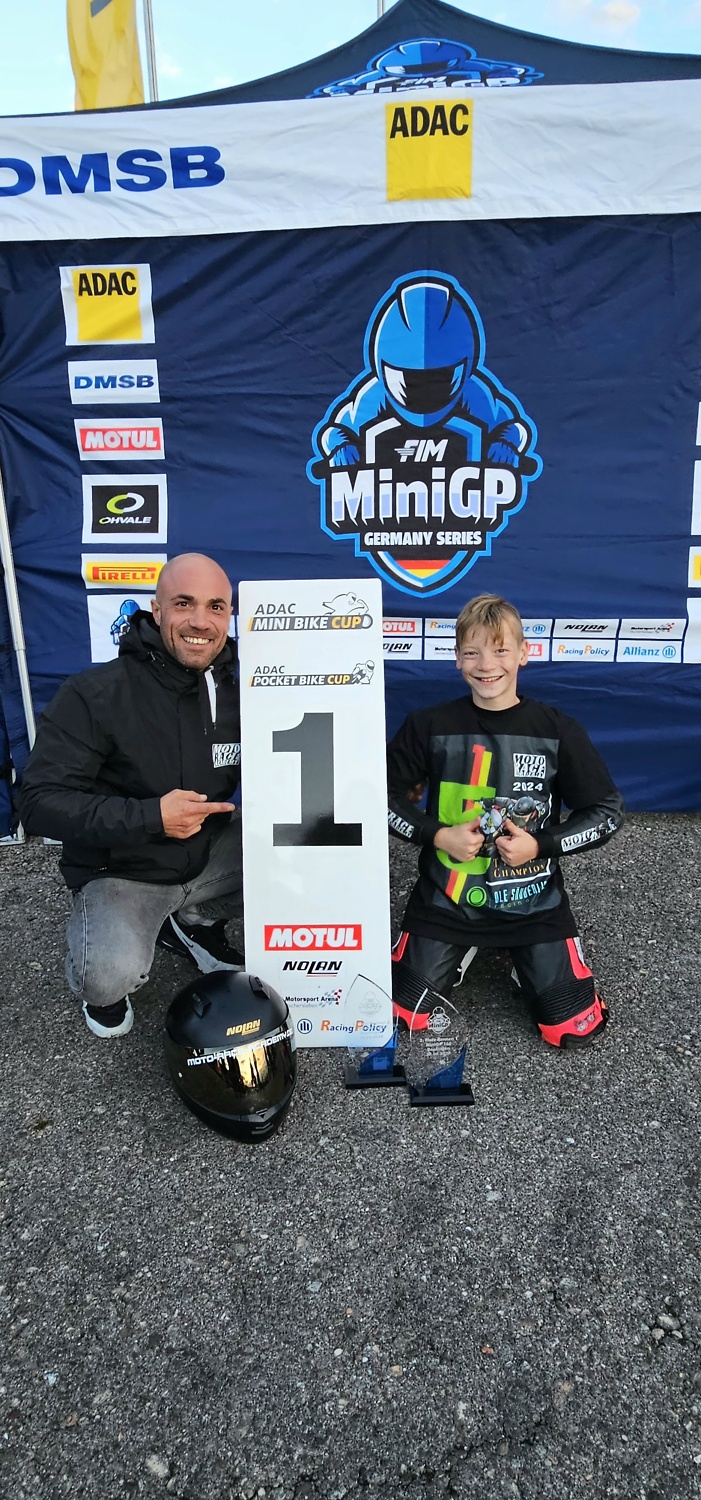 Trotzdem war er zufrieden, denn das bedeutete Triple Champion - ADAC Minibike Cup, FIM MiniGP und Deutscher Meister DMSJ.